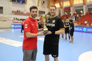 - Kapetan ekipe, David Miklavčič je takole precej zaslužen pokal za prvo mesto. Foto: Maja Bukovnik/RK Gorenje Velenje