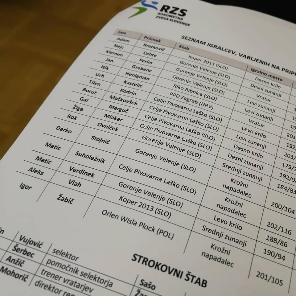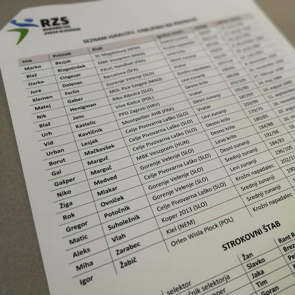 SEZNAM SLOVENSKE ROKOMETNE REPREZENTANCE ZA KVALIFIKACIJE ZA SP V ROKOMETU 2019 Z MADŽARSKO: